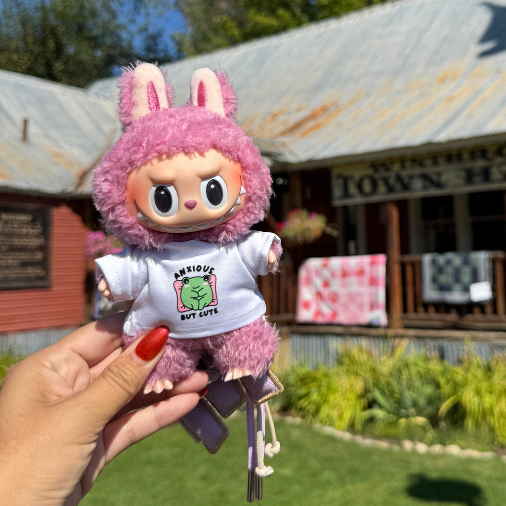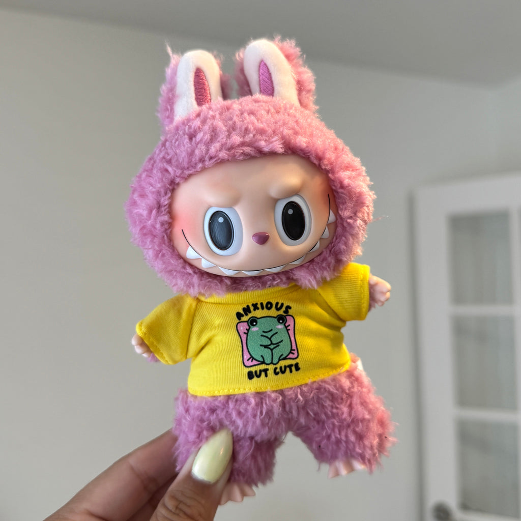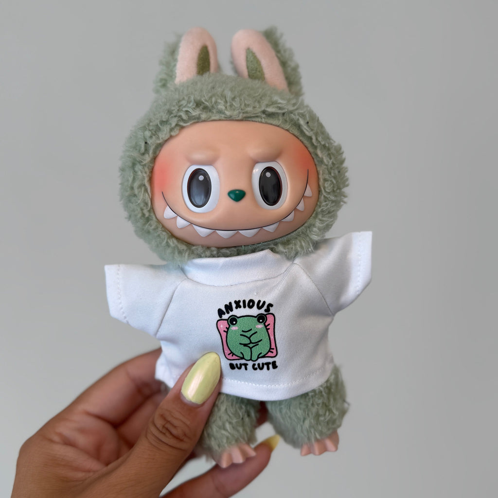 Anxious But Cute Labubu ShirtShirt will fit all versions of Labubus (Macaron, HAS & BIE)- not the minis!