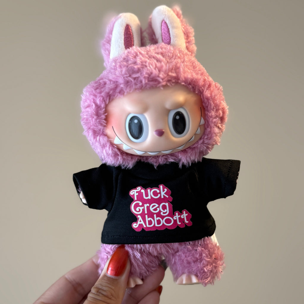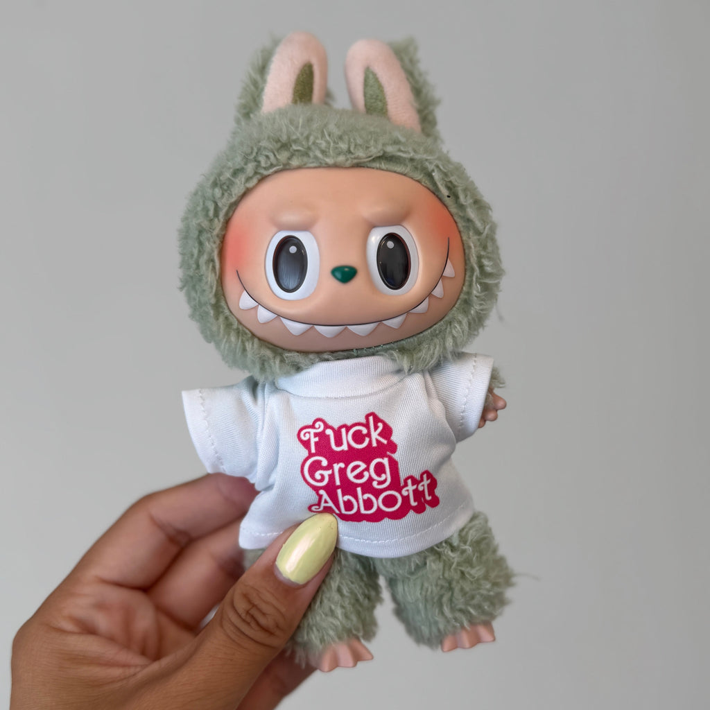 Fck Greg Abbott Labubu Shirt Shirt will fit all versions of Labubus (Macaron, HAS & BIE)- not the minis!
