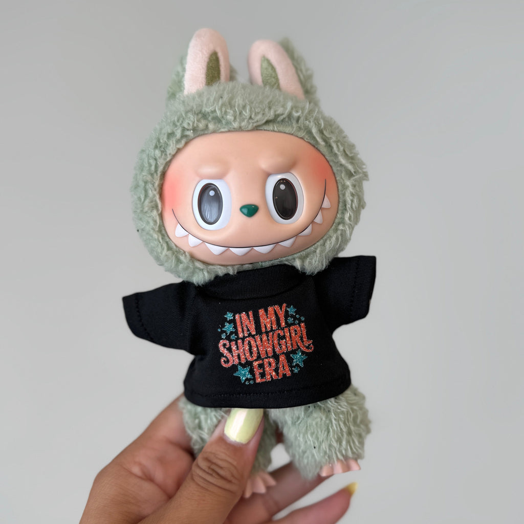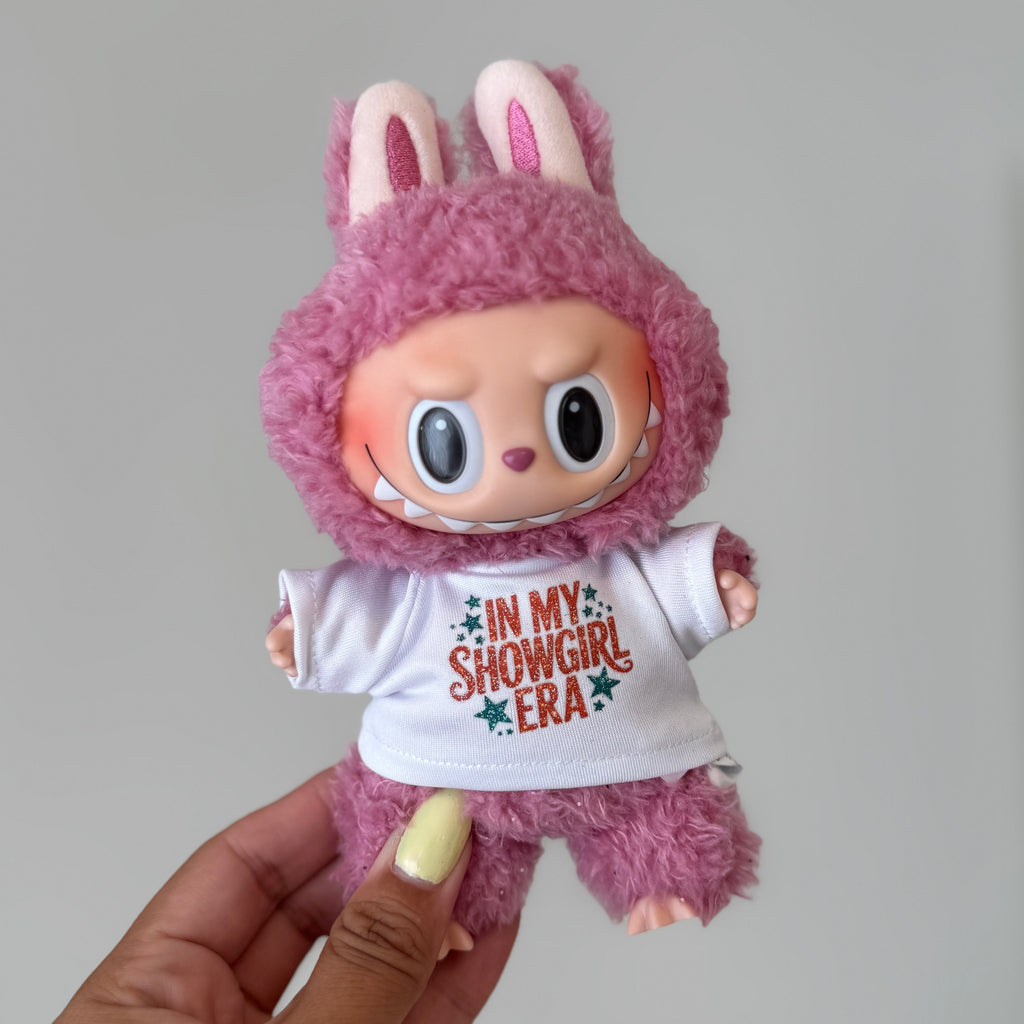 In My Showgirl Era Labubu ShirtDesign is glitteryShirt will fit all versions of Labubus (Macaron, HAS & BIE)- not the minis!
